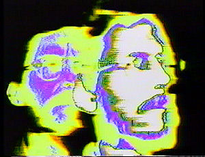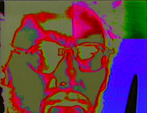 With the NEA grant and in the last space that the NCET moved into in Berkeley before it died from loss of funding, I connected the Buchla synthesizer to a video imaging machine. The Buchla would effect spectacular bands of colors that moved with its sounds. I also aimed the camera at a white lit light bulb, or upon my face, the various light levels causing a myriad of fantastic color combinations that enthralled me, that kept me doing it for hours, months.