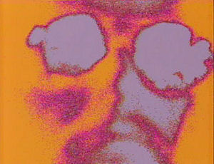His idea is to make a work that is totally integrated aurally and visually. He feels the two should complement each other completely. The problem is to balance the work so that both visuals and audio are interesting. He explains: "in a lot of these experiments, I'm not even putting the sound on because the sound is dumb. The thing about sound is, it's so complex that when it's represented in images, the images are so complex, they become chaos. Whereas the simplest sounds make the clearest images...There's a lot of activity in sounds and it becomes blurry visually; it looks like noise. So the simplest sounds, like single tones, make the best images...working with sounds you actually want to use and save is a problem."